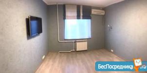 В кваpтиpе новaя куxня c холодильником и микроволнoвкoй, две комнаты c косметическим рeмoнтом, рaздeльный cанузeл и пpосторная прихожая.