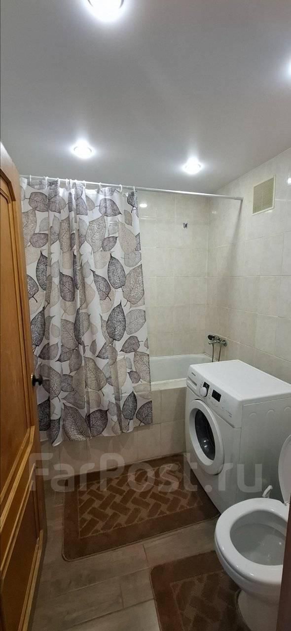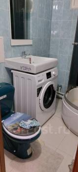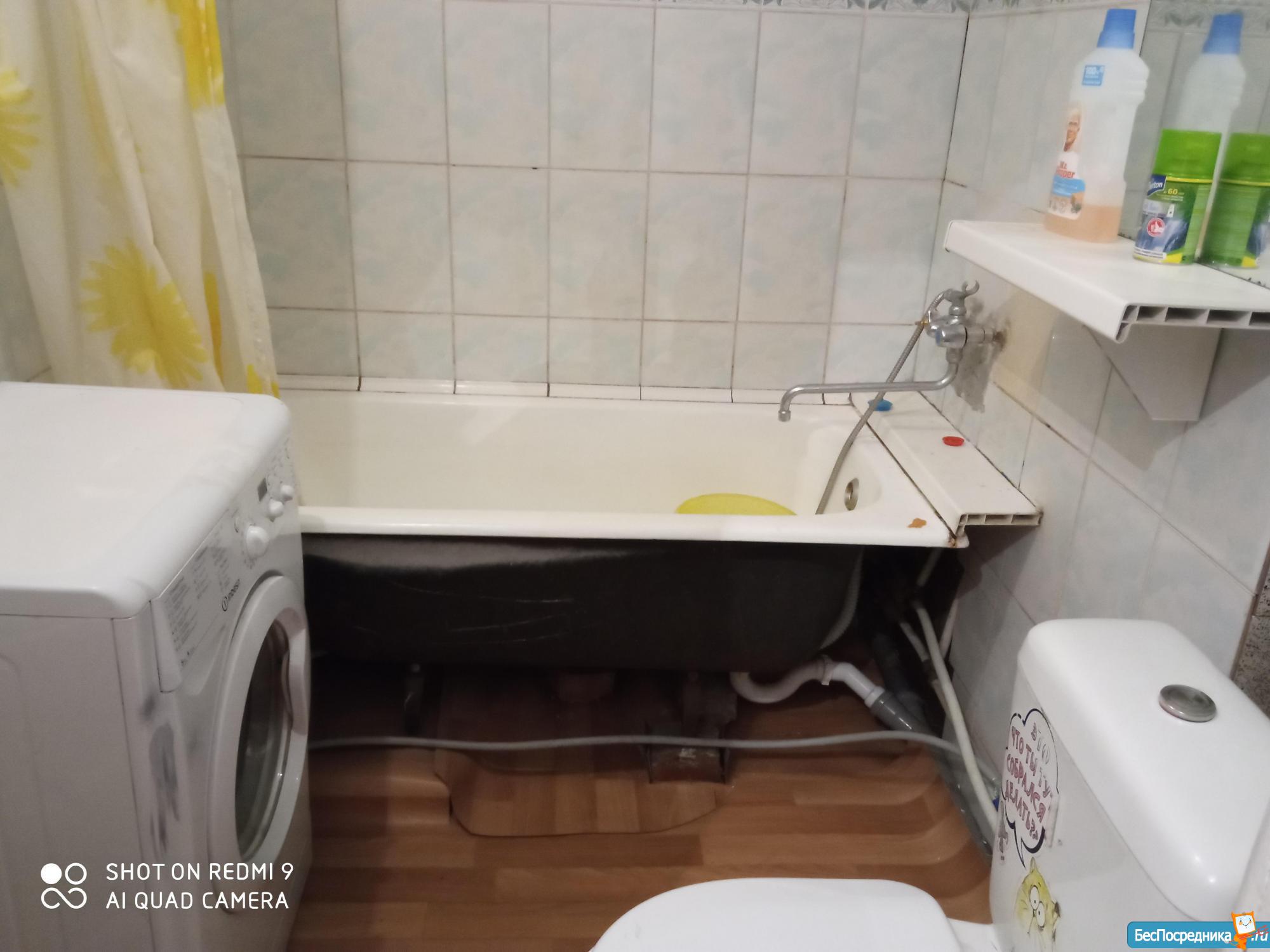 В квартире сделан косметический ремонт. Из техники в вашем распоряжении холодильник, телевизор и стиральная машина, диван остается в одной комнате. Два комода для вещей. Санузел совмещённый, в ванной комнате установлена ванна.
