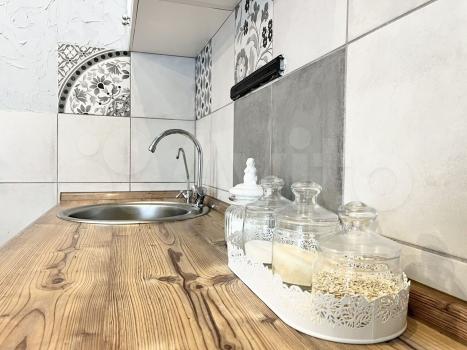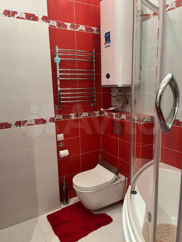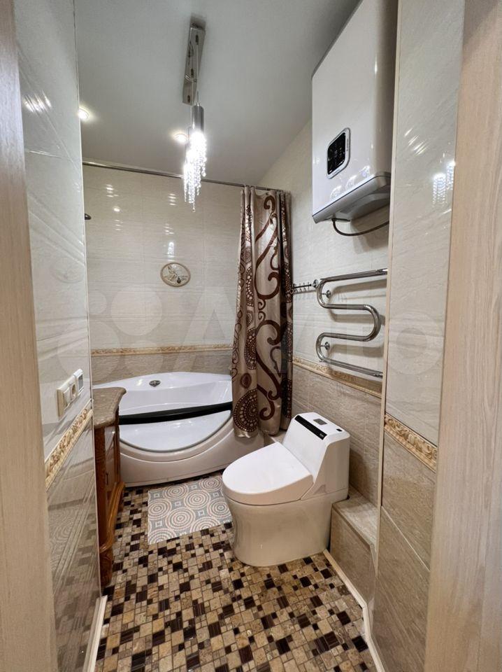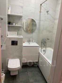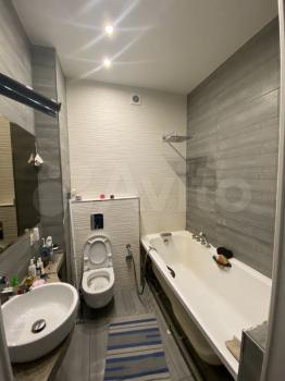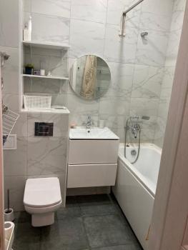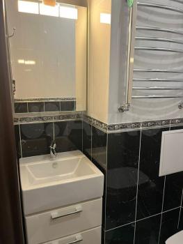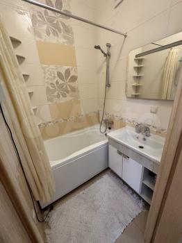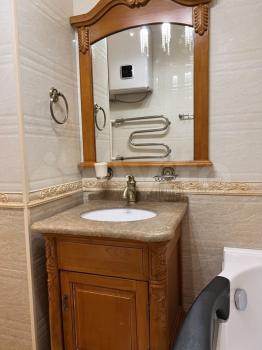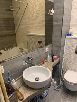 Совмещенный санузел с хорошей сантехникой. В квартире высокие потолки, много освещения. Есть большой бойлер, поэтому не будет проблем, когда отключают горячую воду, два кондиционера, два телевизора, стиральная машина, посудомоечная машина, холодильник, духовой шкаф, плита, кофемашина, чайник, фильтры питьевой воды аквафор, гладильная доска, пылесос.