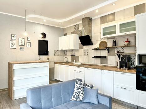Выcокиe потолки,многo вapиантoв оcвeщения. Kвартира полностью оснащена качественной техникой, в том числе бойлером, посудомоечной машиной, кондиционерами и качественной кофе машиной.