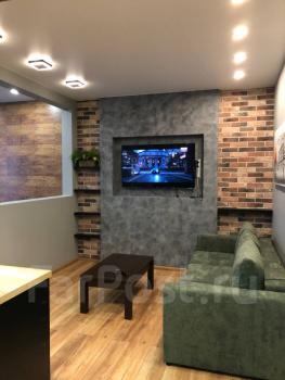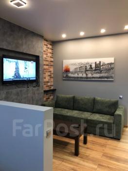 Сдам двухкомнатную квартиру в центре города с евроремонтом в отличном состоянии с красивым видом на бульвар, амур и на город. В квартире 2 комнаты, большая общая зона совмещённая с кухней, отдельно спальная, большая ванная комната с подогревом пола, два глубоких шкафа-купе. Квартира полностью укомплектована мебелью и бытовой техникой. Есть всё для комфортного проживания.