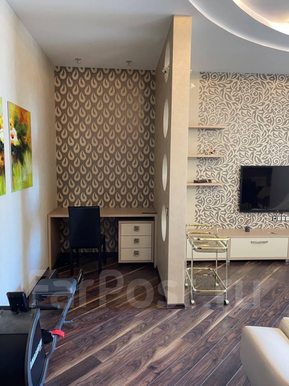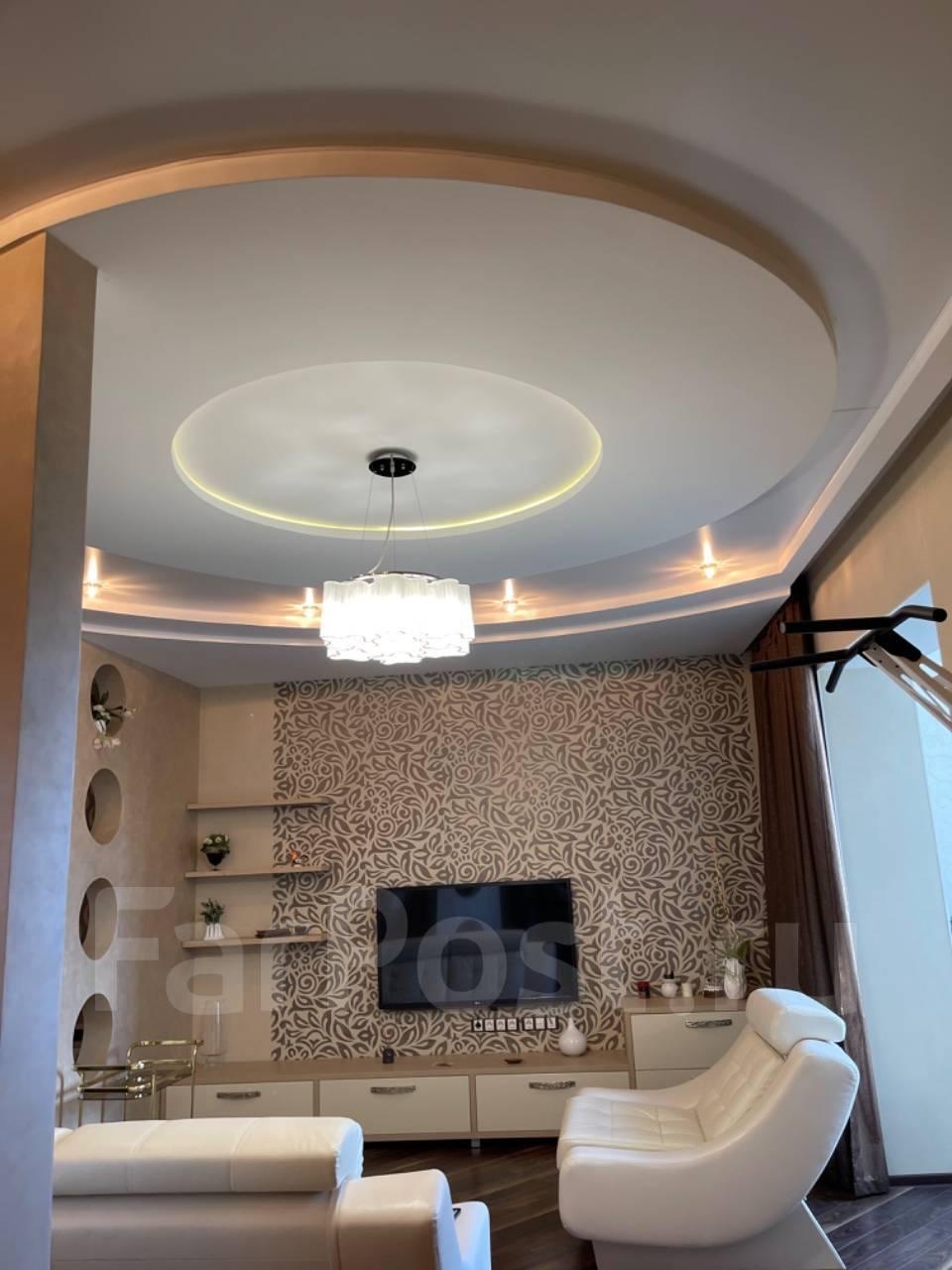 Мебель: Двуспальная кровать, Диван, Кровать, Компьютерный стол, Кресло, Кухонный гарнитур, Стенка, Шкаф-купе, Тренажёр ямогучи, гардеробная, , Ламинат,, Межкомнатные двери, Пластиковые окна, Стены выровнены, Софиты, Тёплый пол, многоуровневый Натяжной потолок