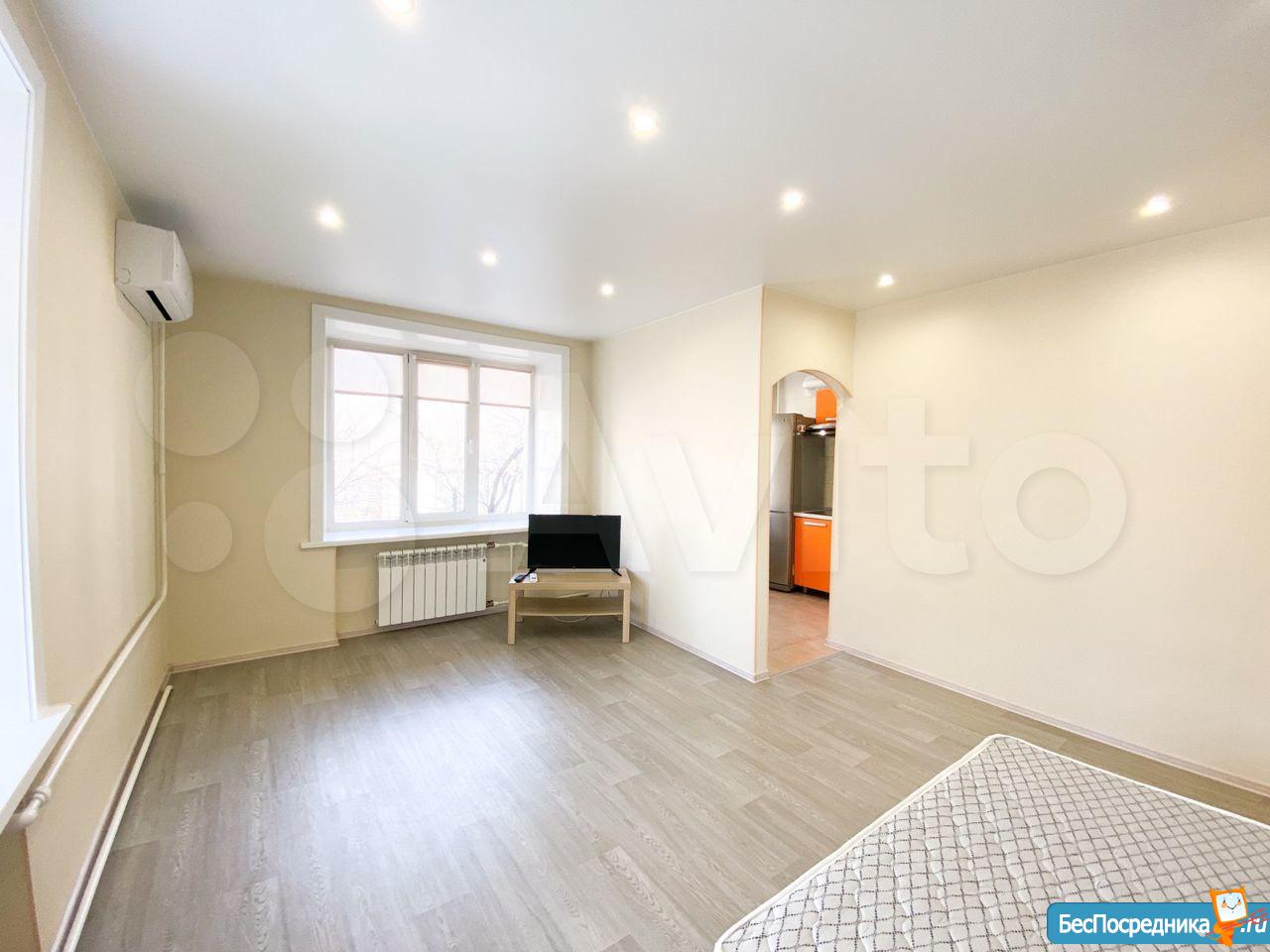 Сдам на длительный срок однокомнатную квартиру после капитального ремонта (ранее не сдавалась), в самом центре города. Тихий огороженный двор (закрытая территория), видеонаблюдение, чистый подъезд, домофон, парковочное место, окна выходят во двор, имеется кондиционер. В доме круглосуточный продуктовый магазин.