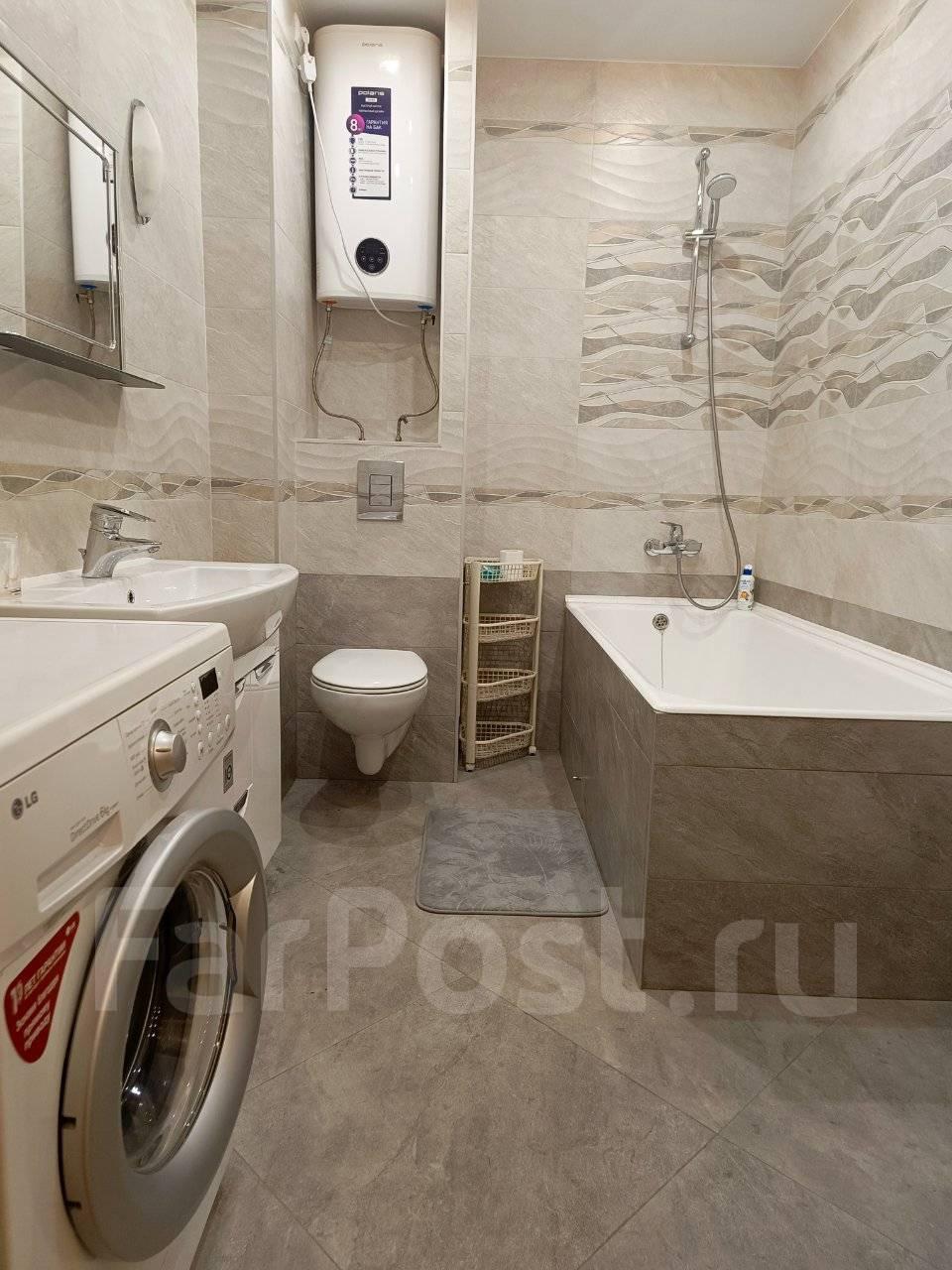В квартире есть все необходимое для проживания (ТВ, стиральная и посудомоечная машина, чайник, питьевой фильтр, утюг, пылесос, бойлер)
