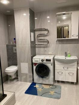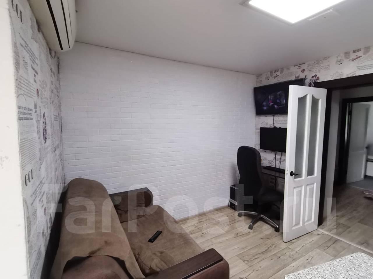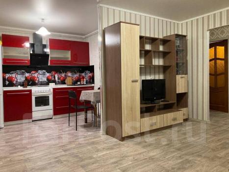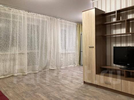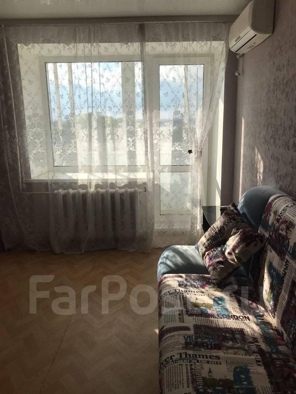 Особенности: Предложение от собственника! Сдам 1-комнатную квартиру в Краснофлотском районе г. Хабаровска (5/6, 34 кв.м.). Кирпичный дом, домофон, пластиковые окна, металлическая дверь, частично меблированная (встроенный шкаф-купе, диван, кухонный стол, стулья), бытовая техника (стиральная машина автомат, холодильник, кондиционер, эл.плита, телевизор), проводной интернет. С/у совмещен, кафель. Красивый вид из окна на амурский мост. Сдам на длительный срок. Собственник., Балкон застеклён, Железная дверь, Ламинат, Межкомнатные двери, Натяжной потолок, Софиты, Стены выровнены