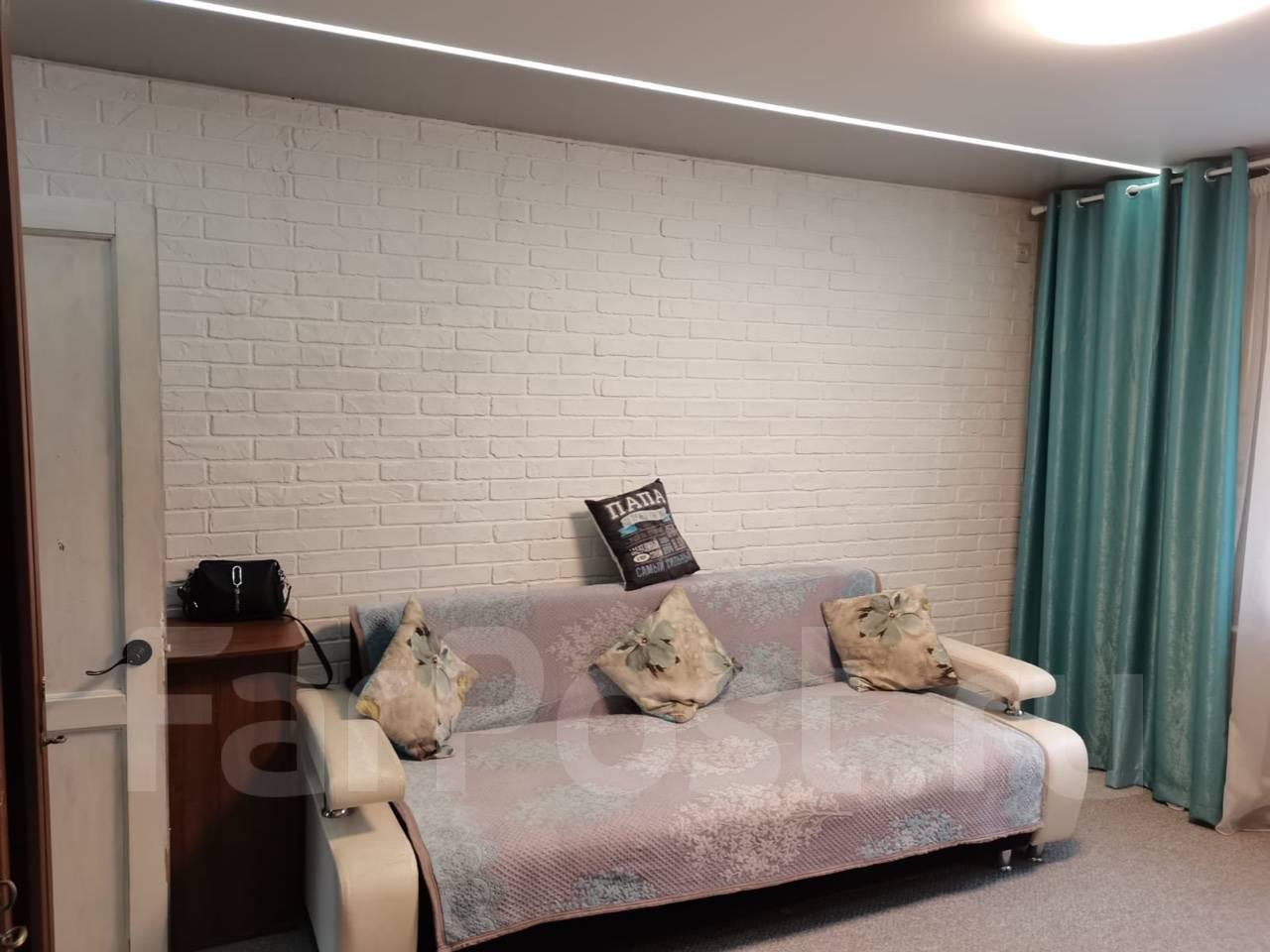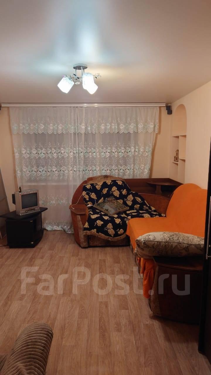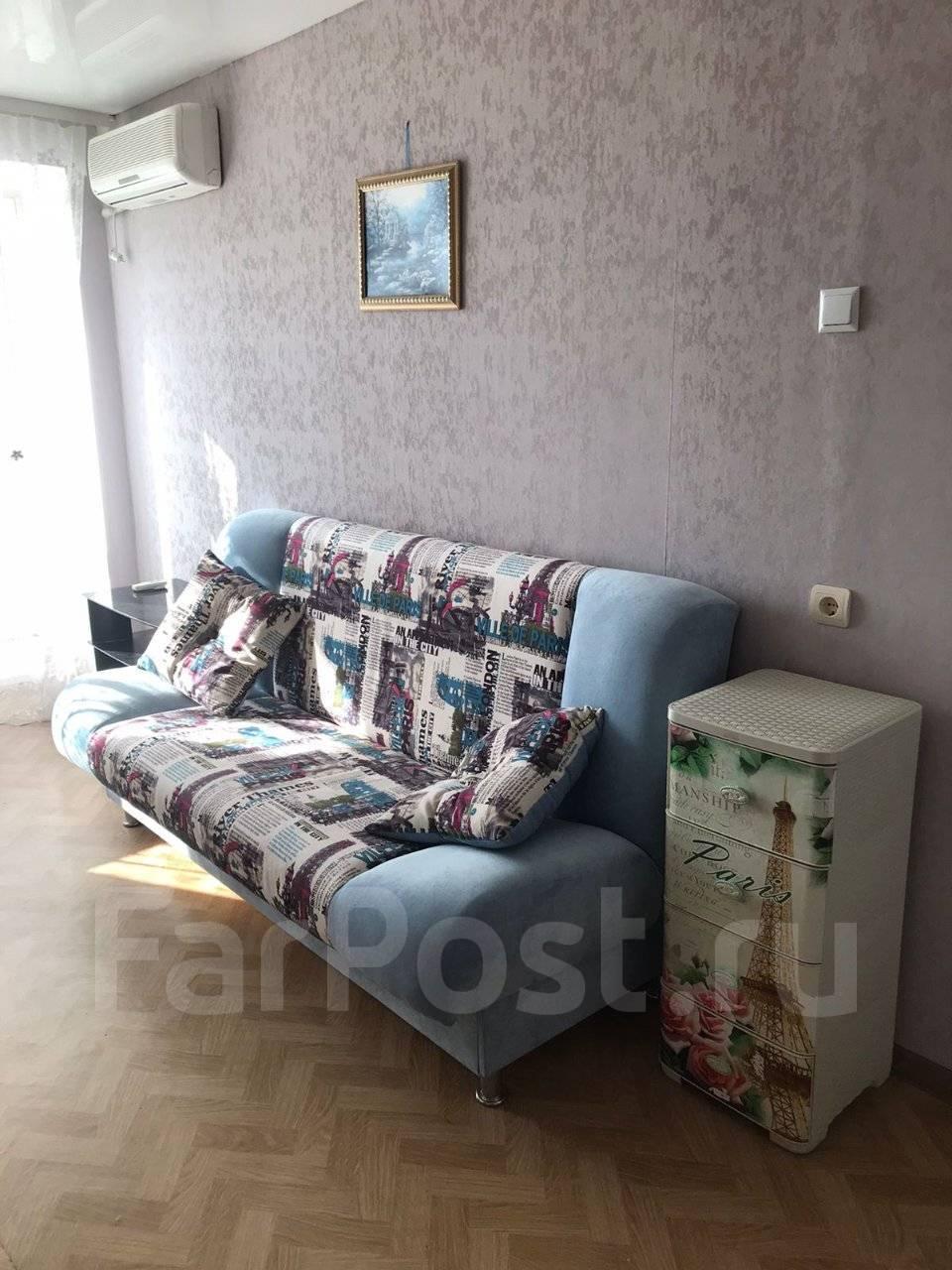 Особенности: Сдам 1-комнатную квартиру в Краснофлотском районе г. Хабаровска (5/6, 34 кв.м.), район 84 школы. Кирпичный дом, домофон, пластиковые окна, частично меблированная (встроенный шкаф-купе, диван, кухонный стол, стулья, кухонный уголок), бытовая техника (стиральная машина автомат, холодильник, кондиционер, эл.плита), проводной интернет. С/у совмещен, кафель. Красивый вид из окна на амурский мост. Сдам на длительный срок. Собственник.