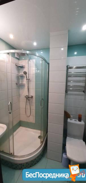 Особенности: Железная дверь, Натяжной потолок, Пластиковые окна, Паркет, Софиты, Стены выровнены, Межкомнатные двери, Душевая кабина.