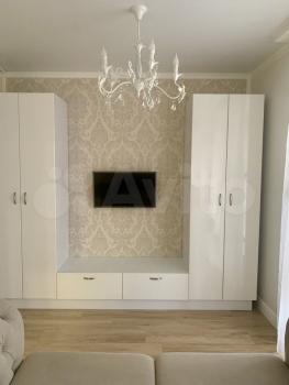 Квартира полностью укомплектована-двуспальная кровать, тумбочки, диван, встроенная кухня, столовая группа, холодильник, вытяжка,варочная поверхность, духовой шкаф, посудомойка, микроволновка, чайник, утюг, бойлер,в каждой комнате по телевизору, кондиционер, тёплый пол в ванной комнате.