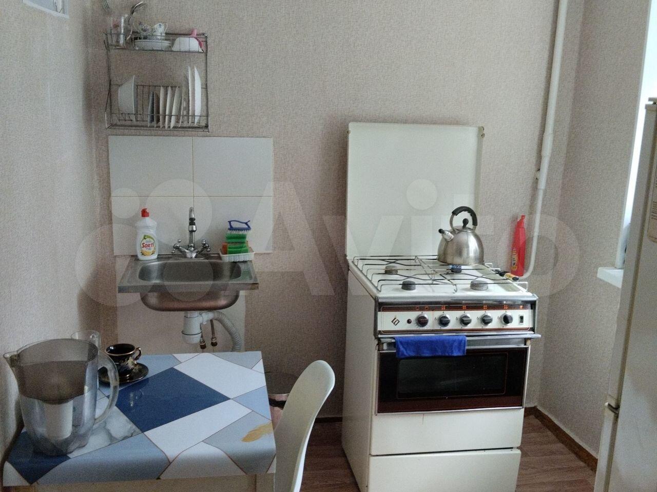 В квартире есть вся необходимая мебель(2 шкафа, кровать, диван, кухонный стол и стулья) и бытовая техника(телевизор, микроволновая печь, холодильник, стиральная машинка).