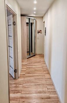 Особенности: Балкон застеклён, Железная дверь, Ламинат, Натяжной потолок, Пластиковые окна, Стены выровнены, Гардеробная