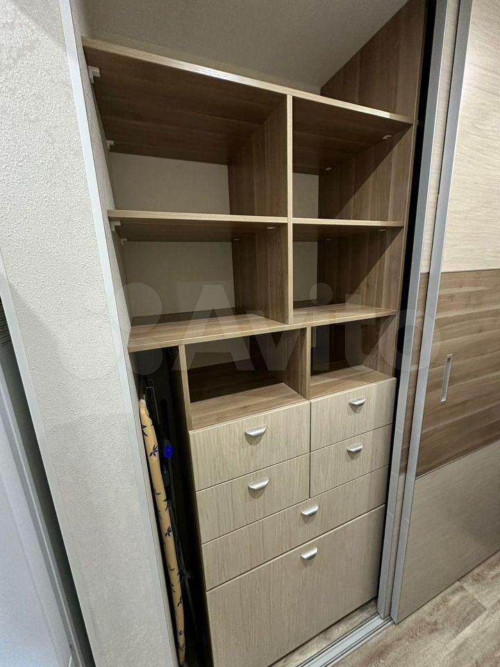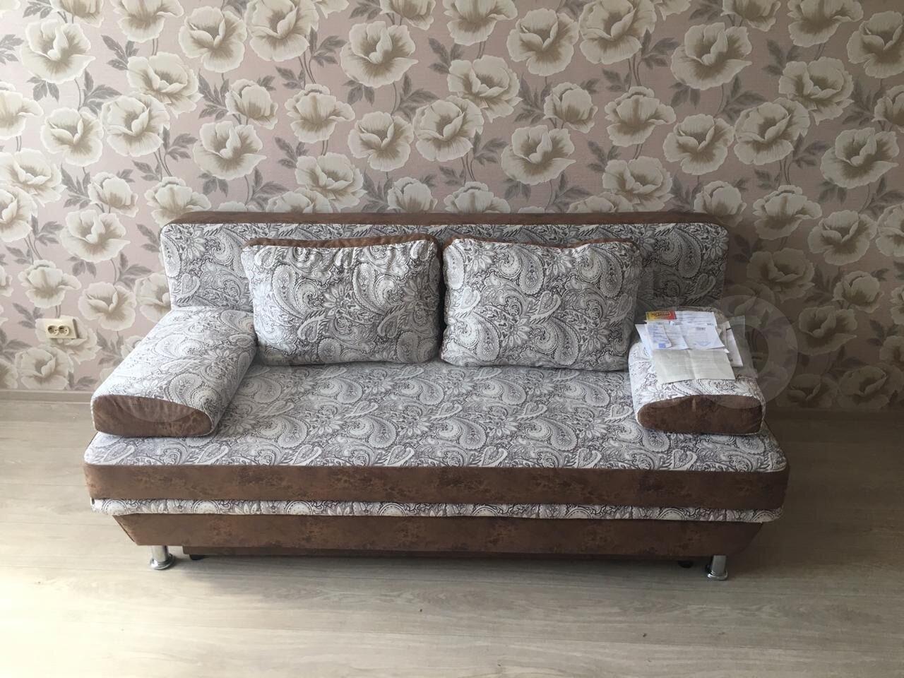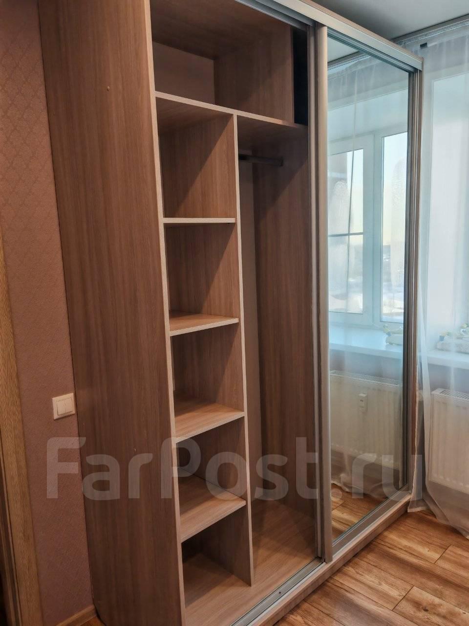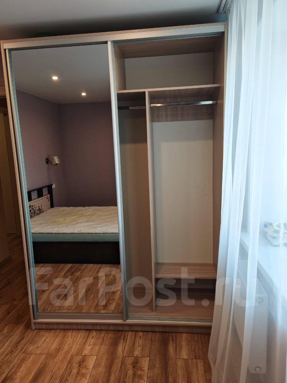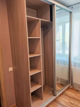 Из мебели имеется кровать с ортопедическим матрасом и диван (на фото нет, т.к. привезем новый в ближайшее время), два зеркальных шкафа, стол и стулья.