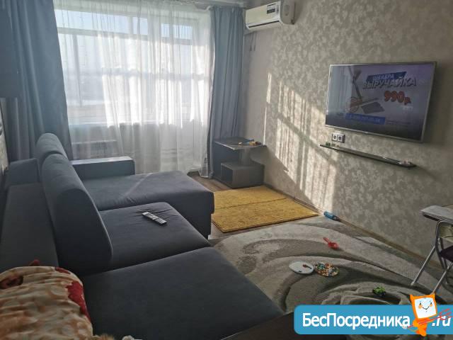 Требования: Сдаётся прекрасная квартира с абсолютно новым ремонтом сделанным в 2019 году. Ремонт делался для себя, все очень чистое и хорошего качества. Везде ламинат, натяжные потолки. Из мебели в квартире имеется: 1 кровать и матрас, 1 диван, шкаф купе на 4 створки, обеденный стол, кухонный гарнитур, встроенная прихожая. Все в идеальном состоянии. Из техники имеется 2 жк телевизора, пылесос, новая стиральная машина, чайник, холодильник, микроволновая печь, мультиварка, утюг. Квартира в центре южного микрорайона. Квартира светлая, и очень солнечная. Рядом есть магазины, в 10 минутах ходьбы торговый центр Южный парк. Если вы хотите жить в комфортных условияхи с хорошим ремонтом то эта квартира для вас. Квартира сдаётся только на длительный срок от 1 года с заключением договора, залог 30000 рублей взымается сразу, если после окончания проживания все осталось в должном состоянии то вся сумма залога возвращается. Расмтаириваю семейную пару словянской внешности, можно с ребёнком или одного человека. Проживание с животными не рассматривается.