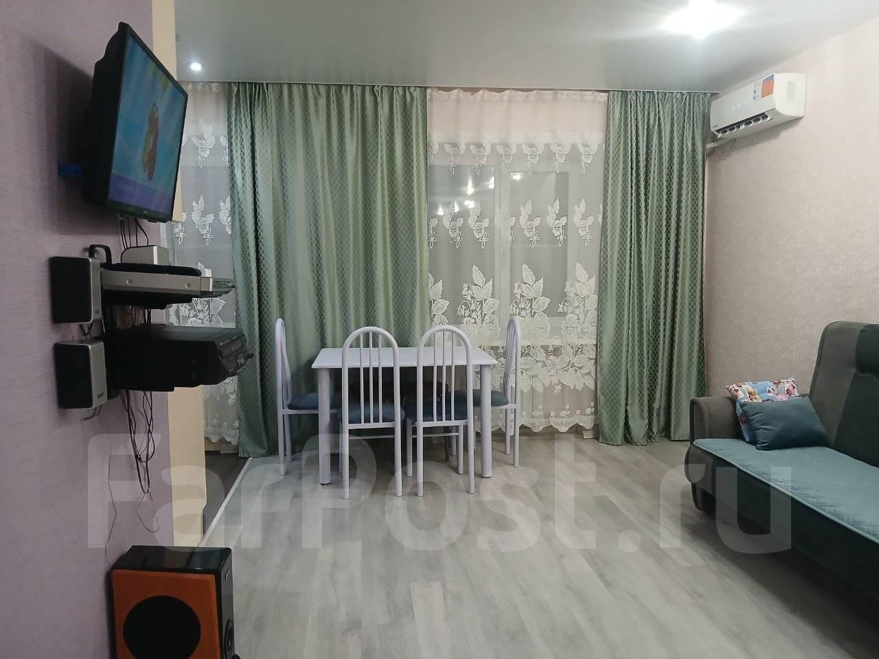 Требования: Без посредников и комиссий! Чистая, ухоженная квартира с хорошим ремонтом и практически новой мебелью. Комнаты раздельные, санузел совмещен, балкон застеклен. В спальне: 2-спальная кровать, шкаф, 2 тумбочки, комод. В зале студии: большой встроенный шкаф с гардеробным отсеком, ЖК ТВ, караоке, DVD, раскладной 2-спальный диван, кондиционер, встроенная кухня с индукционной плитой, духовым шкафом, микроволновкой, чайником, миксером, новым холодильником и стиральной машиной, обеденный стол, 4 стула (после реставрации), 2 табуретки. Также есть все необходимое для комфортного проживания: Белье, полотенца, подушки и одеяла, посуда, гладильная доска, утюг... Заходи и живи. От вас своевременная оплата, чистота и порядок.