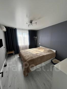 Имеется: шкаф платяной, диван, софа, стол, стул, столик, телевизор, кухонная мебель и обеденная группа, прихожая, холодильник, стиральная машина-автомат, газовая и свч-печь, утюг, чайник, сушилка. В квартире хороший ремонт, пластиковые окна, радиаторы, линолеум, кафель, сантехника, мебель, шторы блэкаут, ковер. Средний этаж. Развитая инфраструктура: близко автобусные и трамвайные остановки, магазины, супермаркеты, пекарня, восточная кухня, гипермаркеты Самбери, ЛеманоПро, спортклуб, бассейн, рынок, кинотеатр Хабаровск, городской парк отдыха "Северный", храмы, поликлиники, микрохирургия глаза, мед.центры и др. До университетов ТОГУ 10-15 минут на транспорте (автобусы, трамвай). Курильщикам и с домашними питомцами просим подыскать другие варианты. Агентам (и агентствам) НЕ БЕСПОКОИТЬ!!!