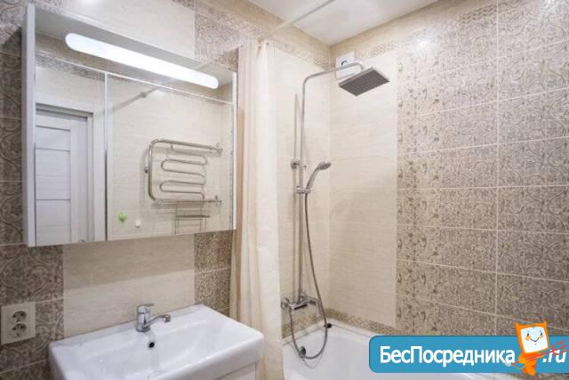 Особенности: Теплый пол в ванной, водонагреватель на периоды отключения воды летом, всё новое и ремонт и мебель. Большой шкаф-купе в прихожей, большой угловой диван (на фото раздвинут на 2 части), мебель «Киви», кровать в комнате (на фото нет её ещё), есть возможность привезти и верхний ярус от кровати этой мебели при необходимости.