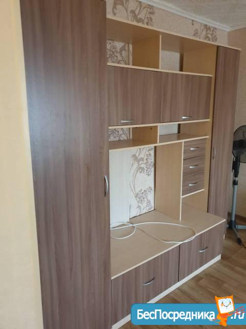 Мебель: Диван(подушки,одеяла), Кухонный гарнитур(посуда,кух.утварь ) Обеденный стол, Стенка, Шкаф, Шкаф-купе,доска для глажки.Если что нужно,докупим