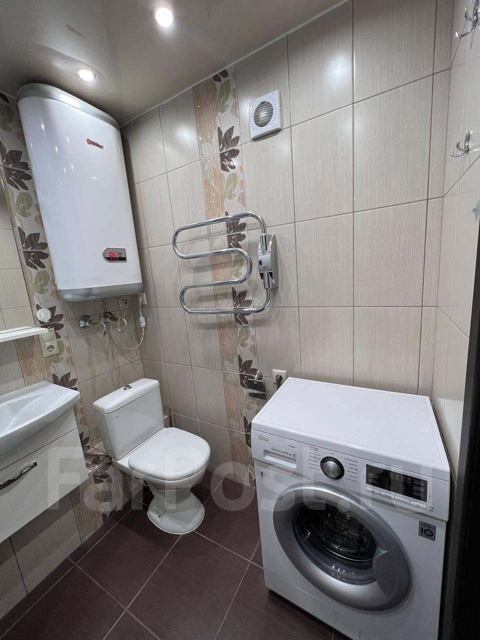 Санузел совмещенный, стиральная машина, горячая вода от бойлера.