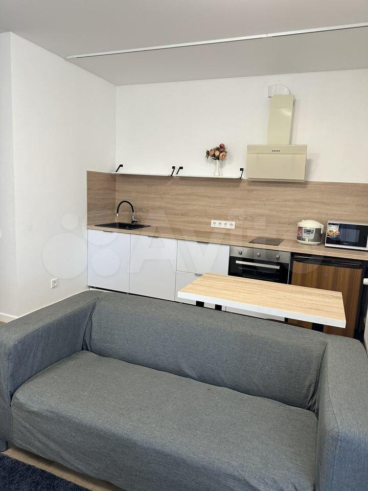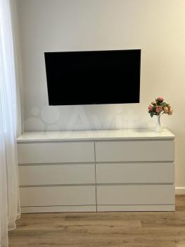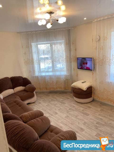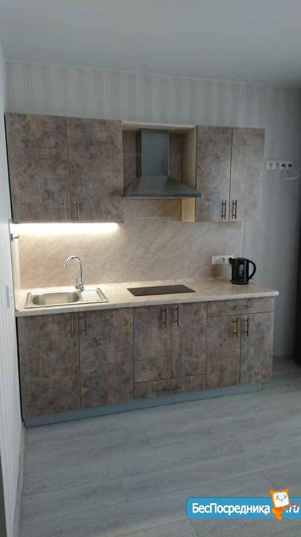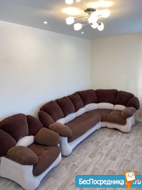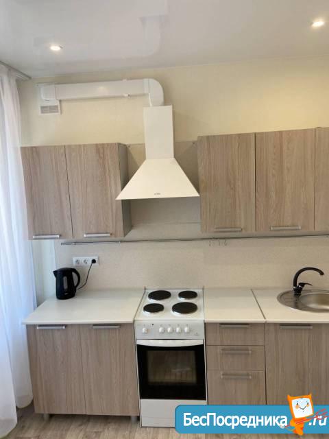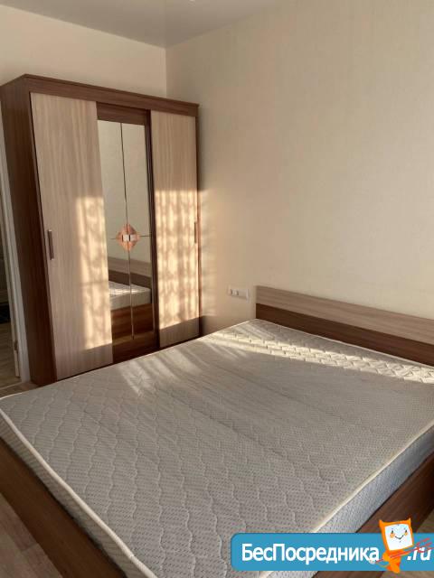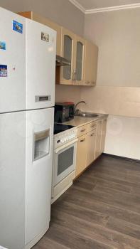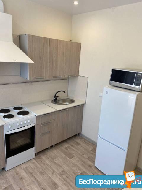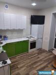 Квартира укомплектована всем необходимым для проживания: новый кухонный гарнитур, стол и стулья, холодильник, электропечью с духовкой, стиральная машинка, телевизор, диван со спальным местом и двуспальная кровать с ортопедическим матрасом, шкаф купе, компьютерный стол со стулом.