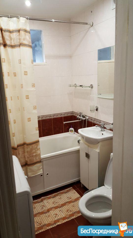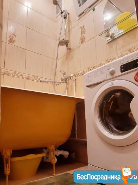 В квартире сделан косметический ремонт. В комнатах имеется необходимая мебель для комфортного проживания. В кухне находится холодильник, а в ванной комнате — стиральная машина и ванна (холодильник истиральная машина по согласованию). Санузел совмещённый, что удобно для ежедневного использования. Балкон есть, он выходит во двор.