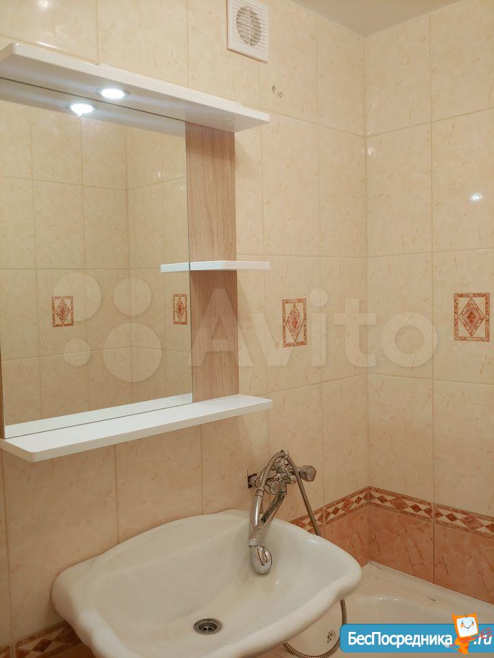 Особенности: Железная дверь, Линолеум, Межкомнатные двери, Натяжной потолок, Пластиковые окна, Софиты, Стены выровнены, Тёплый пол в ванной