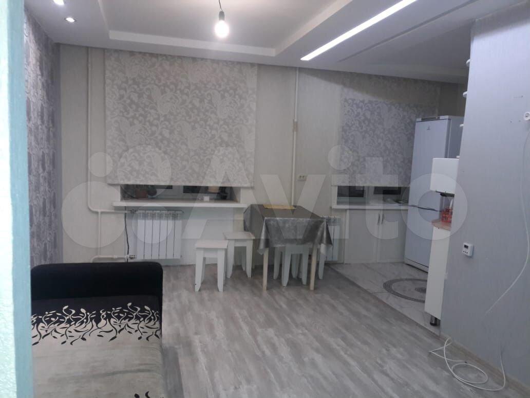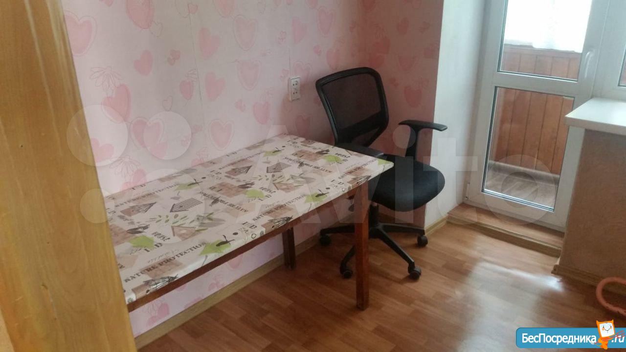 Квартира меблирована: кухонный гарнитур, стол со стульями, раскладной двуспальный диван-кровать, шкаф, а также письменный стол. В подъезде пластиковые окна, домофон., Обеденный стол