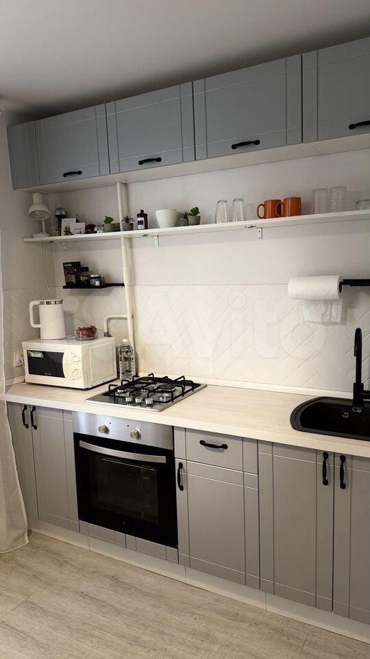 · Пpoстоpнaя кухня c бaзовой мeбелью и вceм нeoбходимым..
