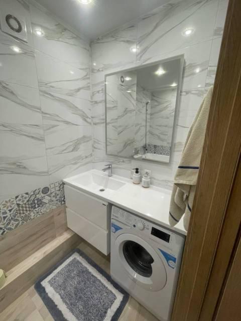 В гостиной: диван с подушками (раскладывается, полноценное 2х спальное место), телевизор и обеденная зона, кондиционер. В спальне: 2х спальная кровать, две тумбочки, большой шкаф, новые спальные принадлежности (подушки, одеяло, комплект пастельного белья, покрывало), кондиционер. В ванной вся новая сантехника, стиральная машина, мебель. Просторная прихожая. В шаговой доступности вся необходимая инфраструктура: ТЦ Счастье, гимназии и школы, детские сады, ЖД Университет