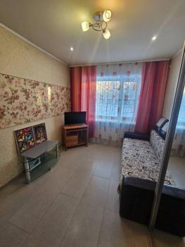 Мебель: В комнате хорошая кровать с ортопедическим матрасом, шкаф, новый холодильник, пластиковое окно, стол.. Комната расположена в трехкомнатной квартире. Там все удобства.