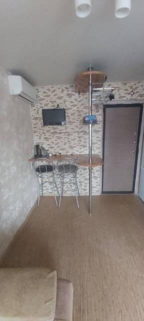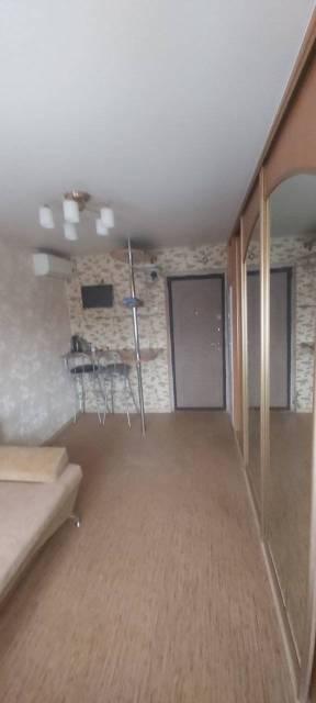 Комната в общежитии частично меблированная. есть интернет, кондиционер, стиральная машина. Из мебели шкаф-купе, диван, кухонные тумбы.