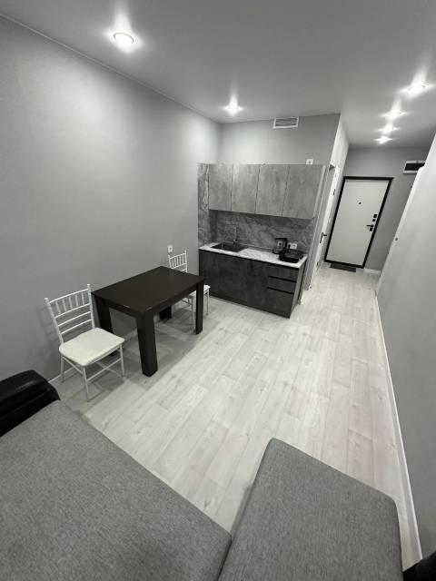 Сдам на длительный срок квартиру-студию в современном жилом комплексе. Полностью готова к заселению: свежий ремонт, мебель, вся необходимая техника и даже посуда.