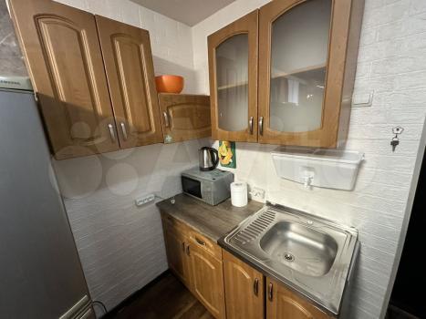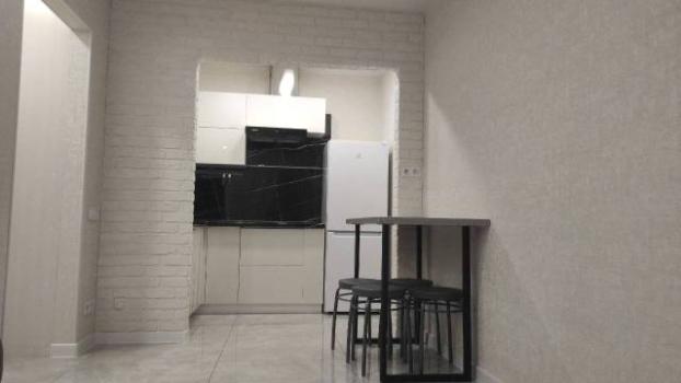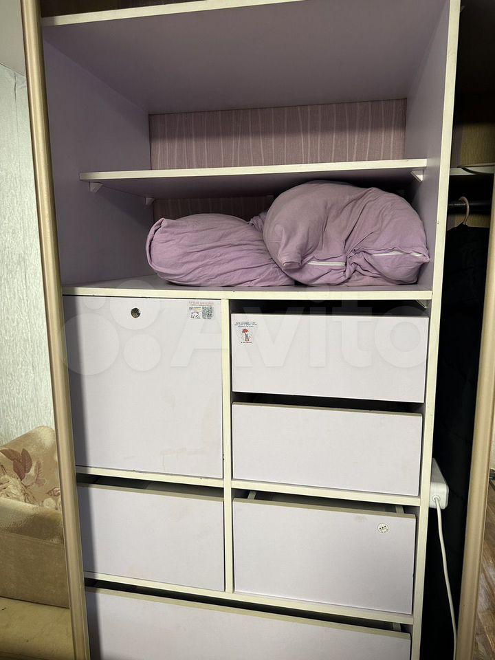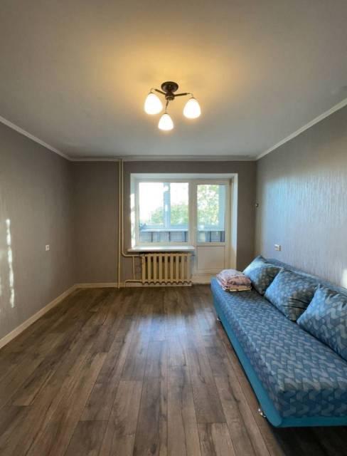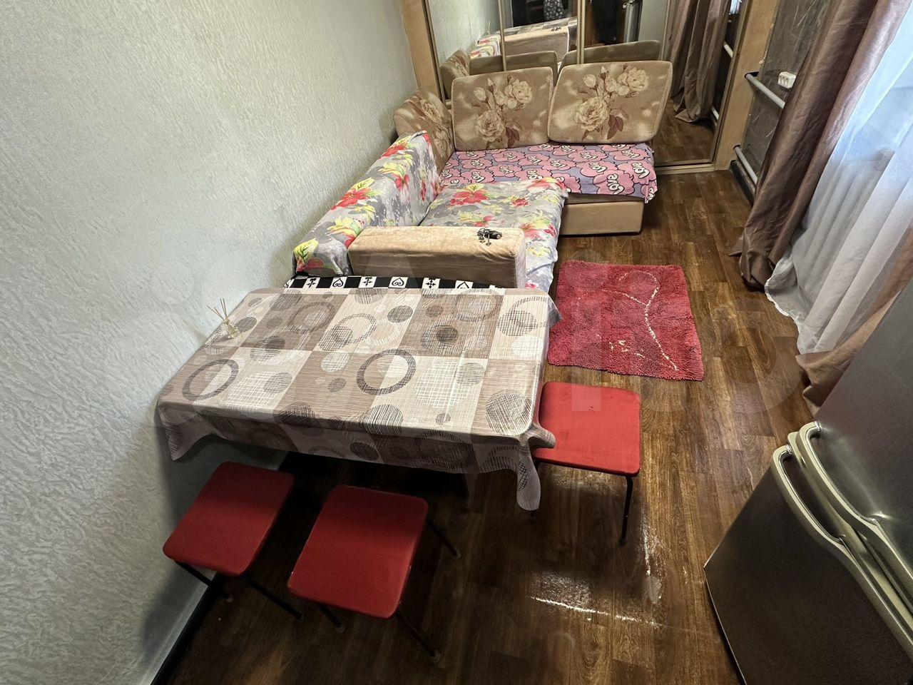 В квартире выполнен косметический ремонт. Кухня площадью 9 м² оснащена необходимой бытовой техникой, включая холодильник и плиту. В комнате два шкафа и два дивана.