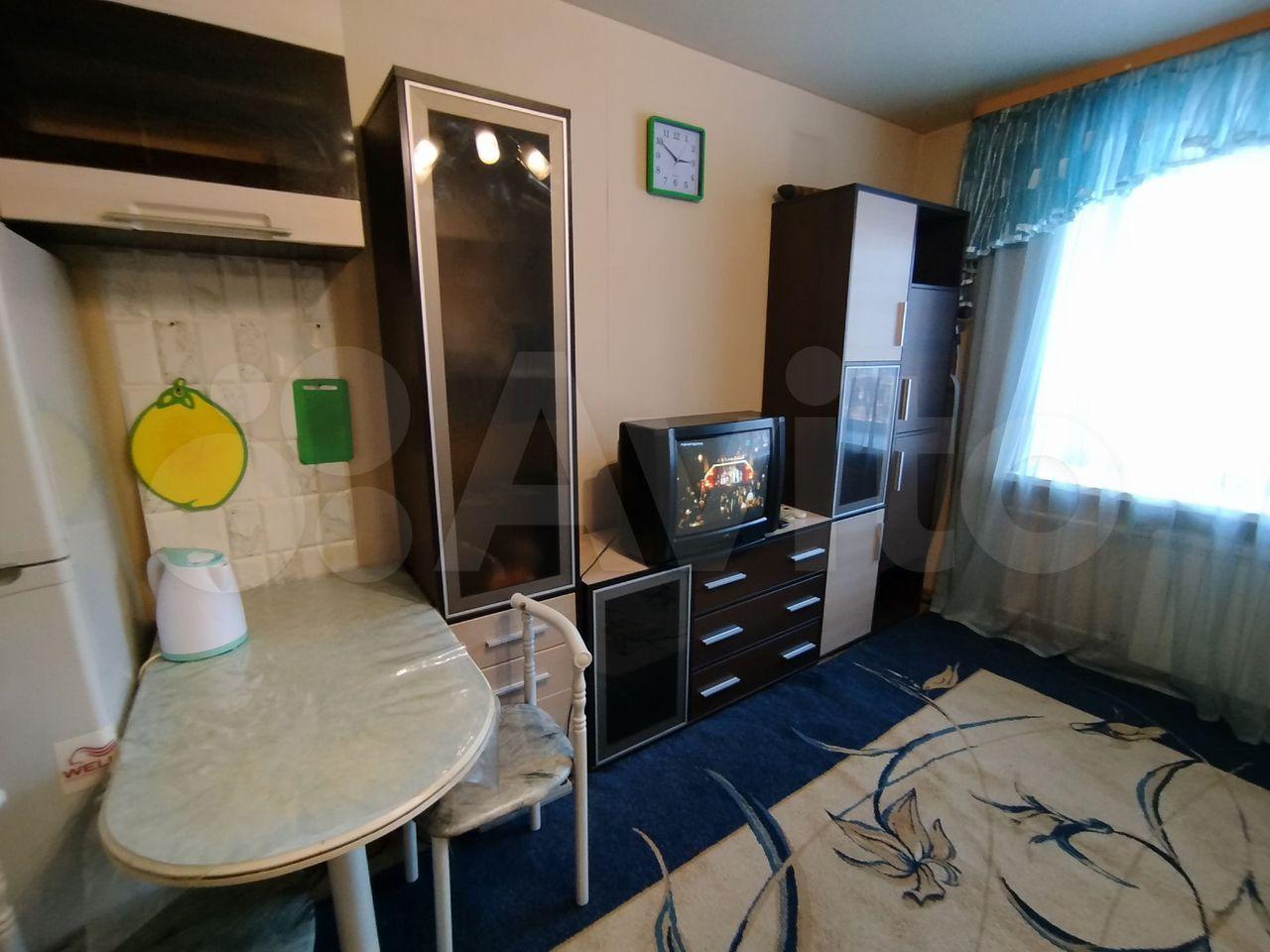 В квартире выполнен косметический ремонт. Кухня оснащена необходимой бытовой техникой. Комната светлая и просторная, с удобным расположением мебели — шкафами. Покупку дополнительной мебели можно обсудить, в том числе в счет арендной платы.